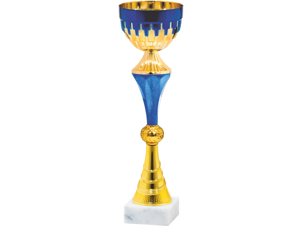 Pohár G26360 je moderný športový pohár v atraktívnej kombinácii zlatej a modrej farby, ktorý zaujme svojím štíhlym tvarom a elegantným dizajnom. Vďaka svojej výške a výraznému vzhľadu je ideálny na ocenenie víťazov športových turnajov, školských súťaží aj firemných podujatí.