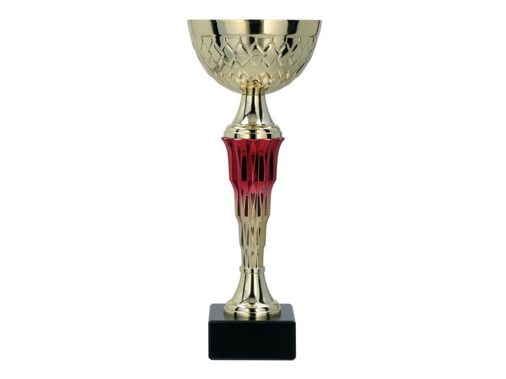 Pohár T9333 je elegantný športový pohár v atraktívnej kombinácii zlatej a červenej farby, ktorý pôsobí výrazne a reprezentatívne pri každom odovzdávaní ocenení. Vďaka modernému dizajnu a stabilnému mramorovému podstavcu je ideálnou voľbou pre športové turnaje, školské súťaže aj firemné podujatia.