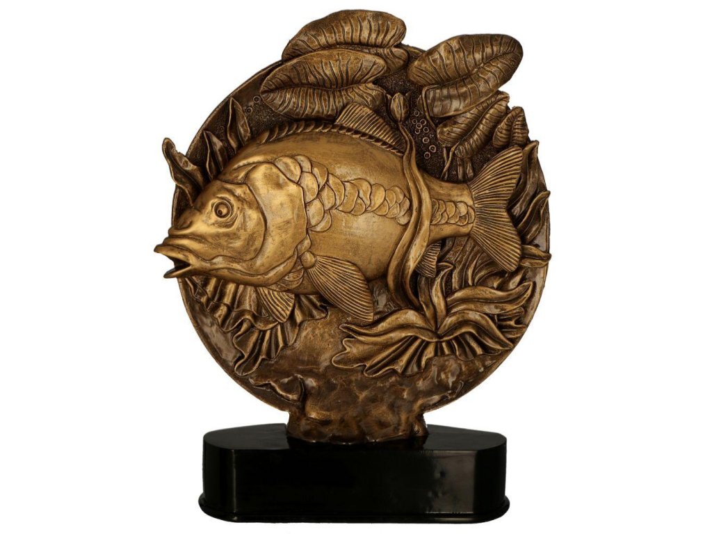 Táto trofej s kaprom dokonale symbolizuje vášeň pre rybolov a ocenenie úspešného úlovku. Je vhodná ako hlavná cena, putovná trofej, ale aj ako darček pre vášnivého rybára.